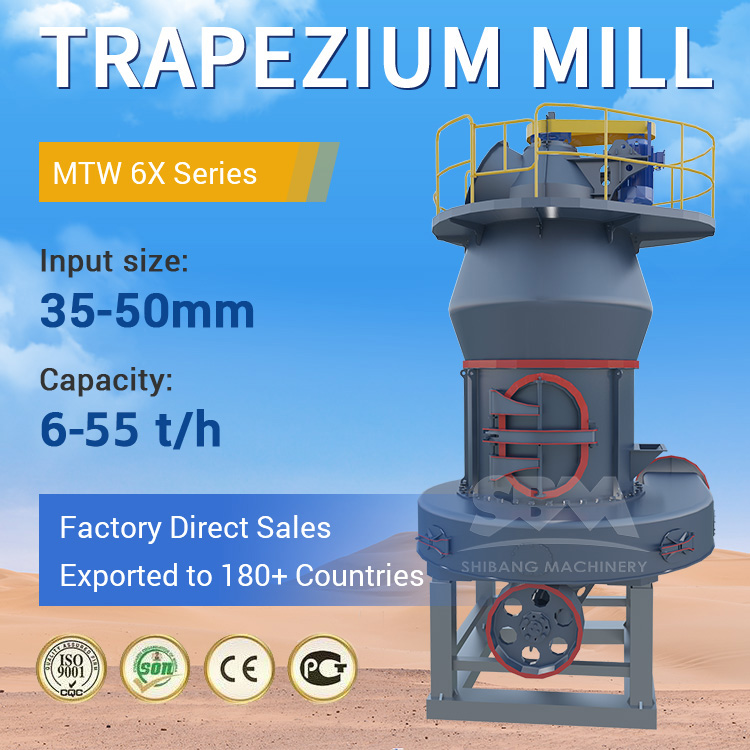 6-55TPHThe MTW6X sixth-generation all-thin-oil lubricated intelligent European Trapezium grinding mill is based on the mature technology of the MTW European Trapezium grinding mill, the fifth-generation best-selling product of SBM. With the purpose of "smarter, more energy-saving, more efficient, more environmentally friendly and more reliable", it has been developed through multiple structural improvements and innovations, and deeply integrated the all-thin-oil lubrication system with the internet of things intelligent control technology. This high-performance product deeply meets the current urgent needs of powder production companies for energy saving.